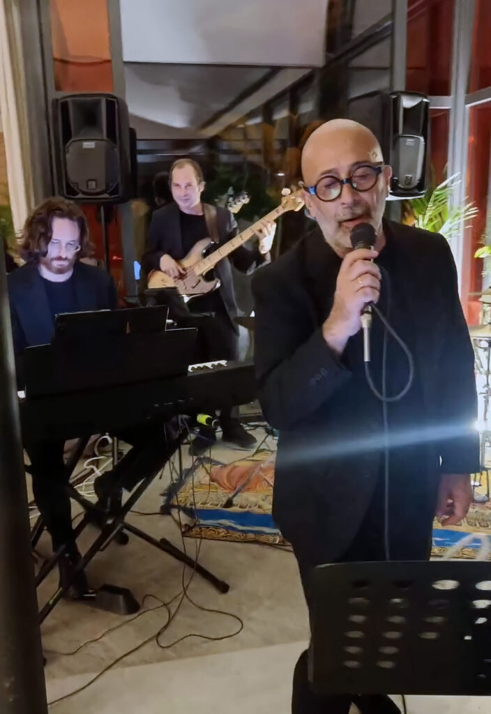 Che parterre stasera! Gli ospiti sono in buona parte musicisti professionisti, colleghi di Gabriele: Pianisti, violinisti, orchestrali… tanti musicisti di estrazione classica. Lo so cosa state pensando: Ma per voi di Sarabanda, una situazione così non è un po’ come passare un esame? No! niente affatto! Può sembrare strano ma non siamo per niente inibiti e non proviamo affatto la fastidiosa sensazione di essere sottoposti a scrutinio attento da una commissione di esperti. L’atmosfera si stabilisce sin dal primo brano, quando suoniamo L-O-V-E per l’ingresso degli sposi in sala: Soltanto tanta attenzione, gioia condivisa e partecipazione entusiasta di ospiti che si rendono conto molto bene, con competenza professionale, della qualità musicale e interpretativa del gruppo che stanno ascoltando. E noi, perdonateci il peccato di presunzione, non avevamo dubbi 🙂
